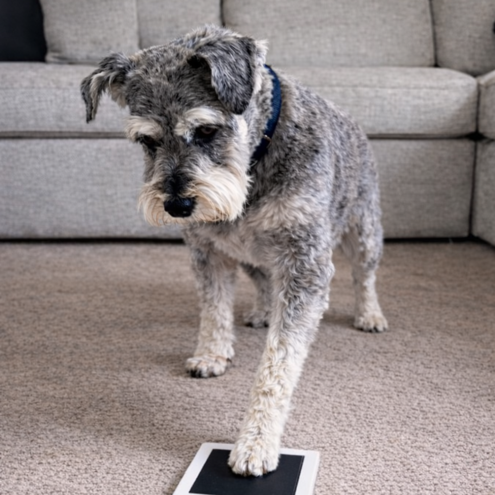 Du placerar ink-paden på pappret och trycker försiktigt ditt husdjurs tass ovanpå. Bläcket överförs till pappret utan att smutsa ner tassen.